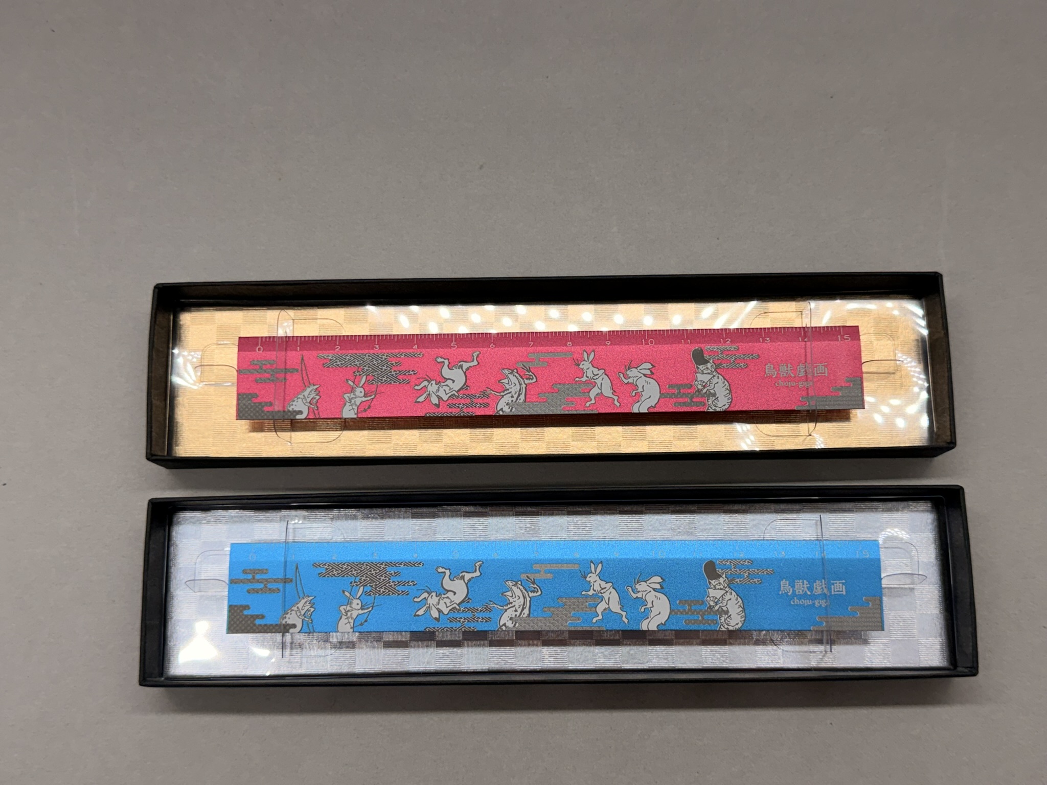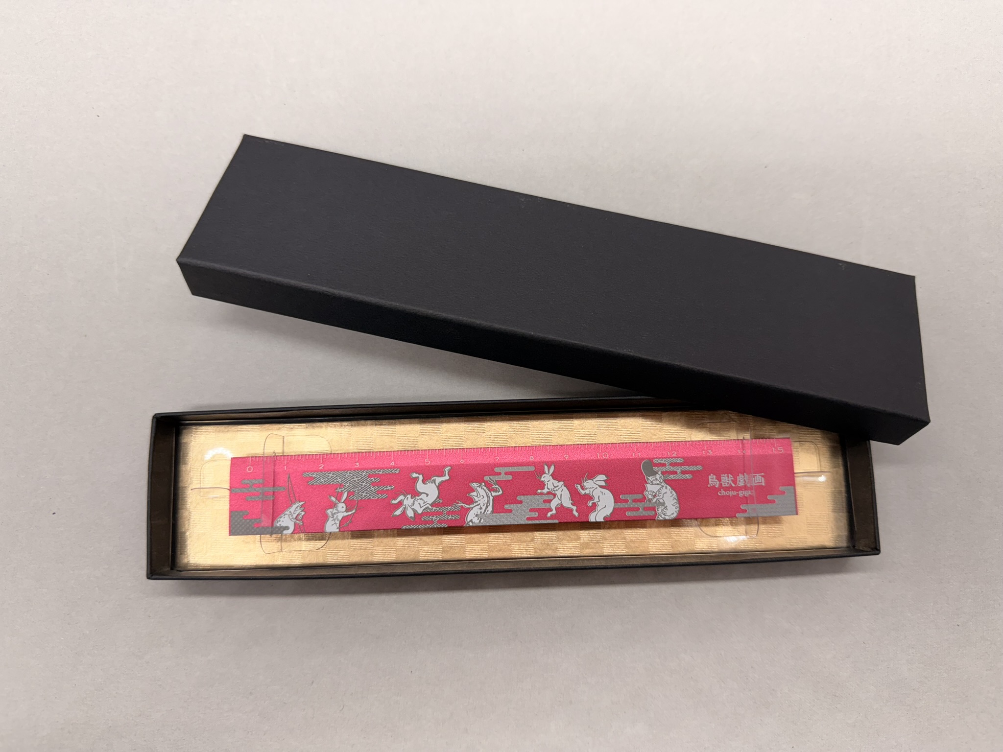 この定規のデザインには、日本最古の漫画とも称され、国宝に指定されている「鳥獣戯画(ちょうじゅうぎが)」のモチーフを採用しました。